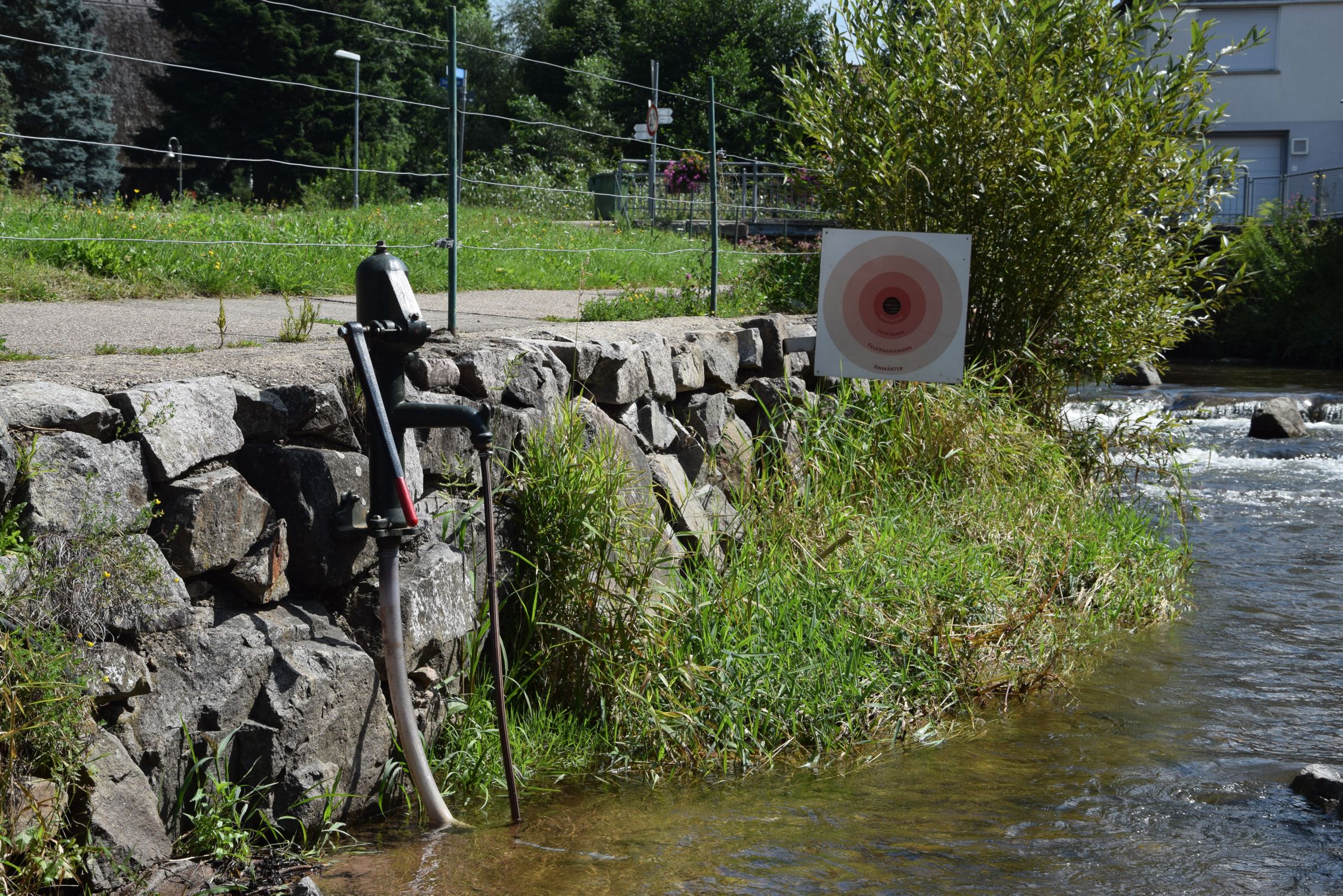 Hier konnten wir von Stein zu Stein hüpfen, uns auf 17 Infotafeln über die Flößerei informieren, an Seilen über den Bach schaukeln, Libellenflügel zum Schwingen bringen, wie ein Entlein übers Wasser fliegen und "Gold" waschen, oder einfach nur die Natur erfahren. Begleitet hat uns die Henne Hanna, deren Eltern auf dem Keramikgeschirr „Hahn und Henne“ verewigt sind. Am Ende der "Wanderung" erwartet uns ein über 350 Jahre alter Bauernhof, in dem das Heimatmuseum untergebracht ist.