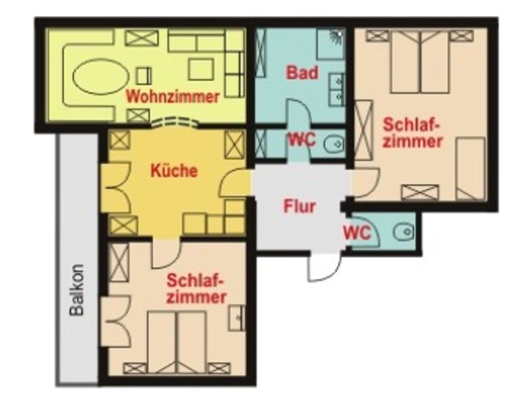 Die neue Wohnung ist ebenfalls etwa 80 qm groß. Sie liegt ebenfalls im 1. Stock und hat einen eigenen Aufgang. Eine große Fensterfront mit Süd-Balkon verspricht einen tollen