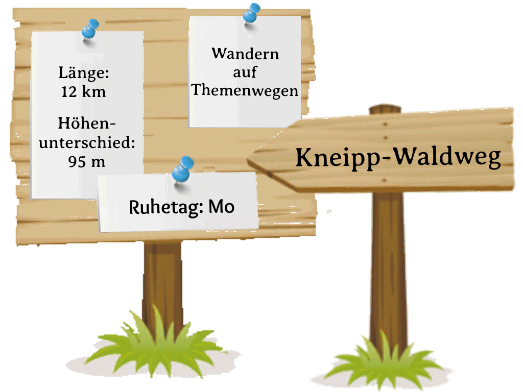 Besonderheiten: zahlreiche Stationen, optional Trimm-Dich-Pfad, thematische Orte, Minigolfanlage und zahlreiche Kneipp-Anlagen