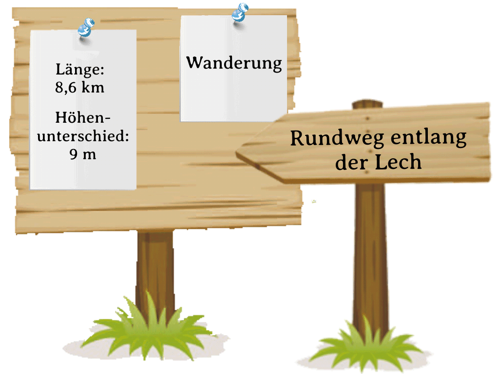 auf die andere Seite zu gelangen. Und schon geht es entlang der Lech wieder zurpück in Richtung Ausgangspunkt. Der Pfad ist nun Teil des Lech-Erlebnis-Weges. An der nächsten verfügbaren Brücke