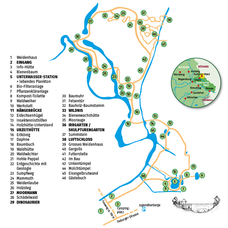 - ... im Wildgarten (externer Link) täglich, 10.00 Uhr bis 17.00 Uhr - Erwachsene: 6,00 €, Kinder: 5,00 € - Lageplan bei den Downloads - Dabergerstrasse 33, 93437 Furth im Wald
