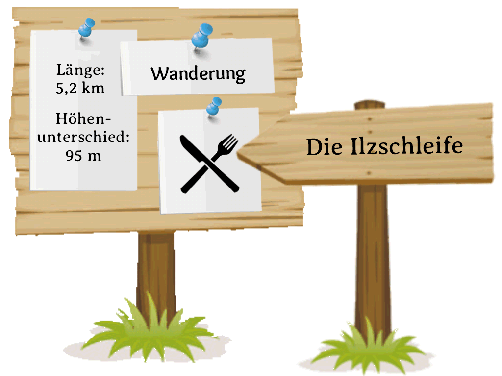 Am Feuerwehr-Haus biegen wir jedoch rechts ab und folgen dem Weg an das Ostufer der nächsten Ilzschleife, die wir bis zum Ort "Hals" folgen. Dabei passieren wir die Westseite der besagten Burgruine. Beim Hofbauerngut wechseln wir abermals die Uferseite und wandern zwischen Fischweihern eine weitere Schleife der Ilz. Schließlich treffen wir wieder auf den Eingang des Felsenstollens. Links herum geht es zurück zum Parkplatz mit der Möglichkeit der Einkehr in den Gasthof.