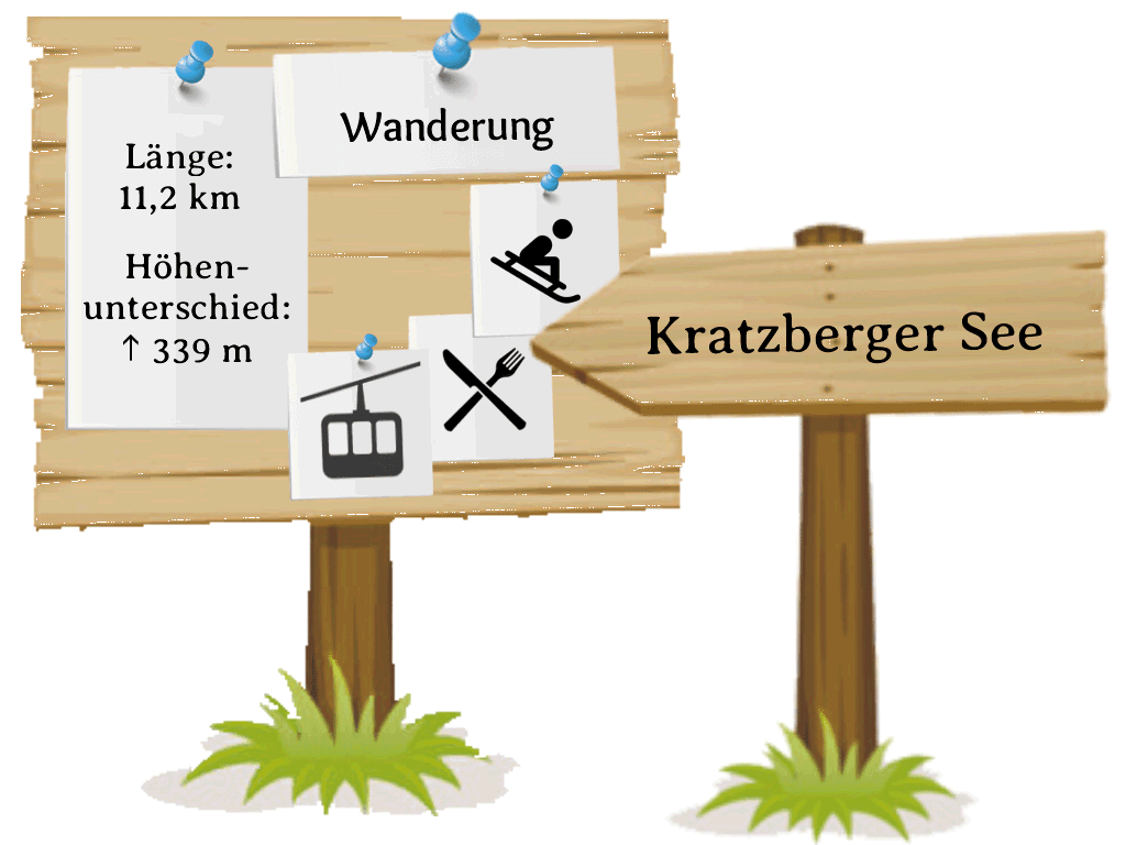Auf diesem Teilstück ist Aufmerksamkeit und Trittsicherheit erforderlich. Diesen Weg wandern wir dann auch wieder zurück. Am Kratzberger See können wir uns die Füße kühlen oder, wer mutig ist, auch im kalten See
