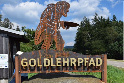 Der Gold-Lehrpfad führt entlang der heute noch reichlich vorhandenen historischen Spuren wie Halden, Seifenhügel und Pingen des mittelalterlichen Goldabbaus. Ausgangspunkt für Wanderungen durch die Goldabbaugebiete ist die Info-Stelle am Gütting, südöstlich von Unterlangau. Anhand von Schautafeln wird die Geschichte des Goldabbaus anschaulich dargestellt.Der Lehrpfad ist unterteilt in drei Abschnitte - wir können alle drei Wege bestreiten (als Rundweg, der dann ca. 14 km lang ist) oder nur zwei Etappen erwandern. In diesem Fall müssten wir mit dem Auto zu einem weiteren Ausgangspunkt fahren.