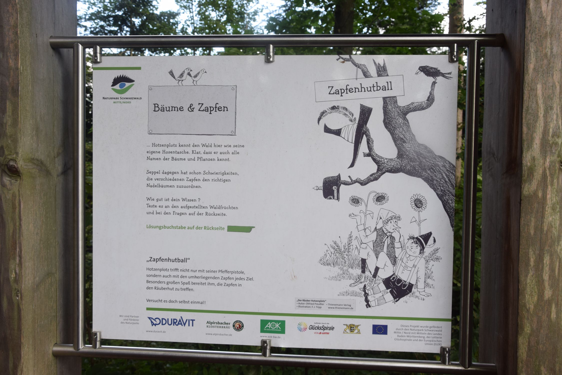 Durch die Wälder Gengenbachs geht es entlang des Räuber-Hotzenplotz-Pfades (externer Link) vorbei an insgesamt 21 verschiedenen Erlebnisstationen. Der Pfad führt durch Bergmischwälder und bietet tolle Ausblicke in das Kinzigtal. Der Weg ist in zwei Abschnitte aufgeteilt, die jeweils ca. 4 km lang sind. Mit dabei sind natürlich der Kasperl, der Seppel, der Wachtmeister Dimpfelmoser, der Petrosilius Zwackelmann und die Oma.