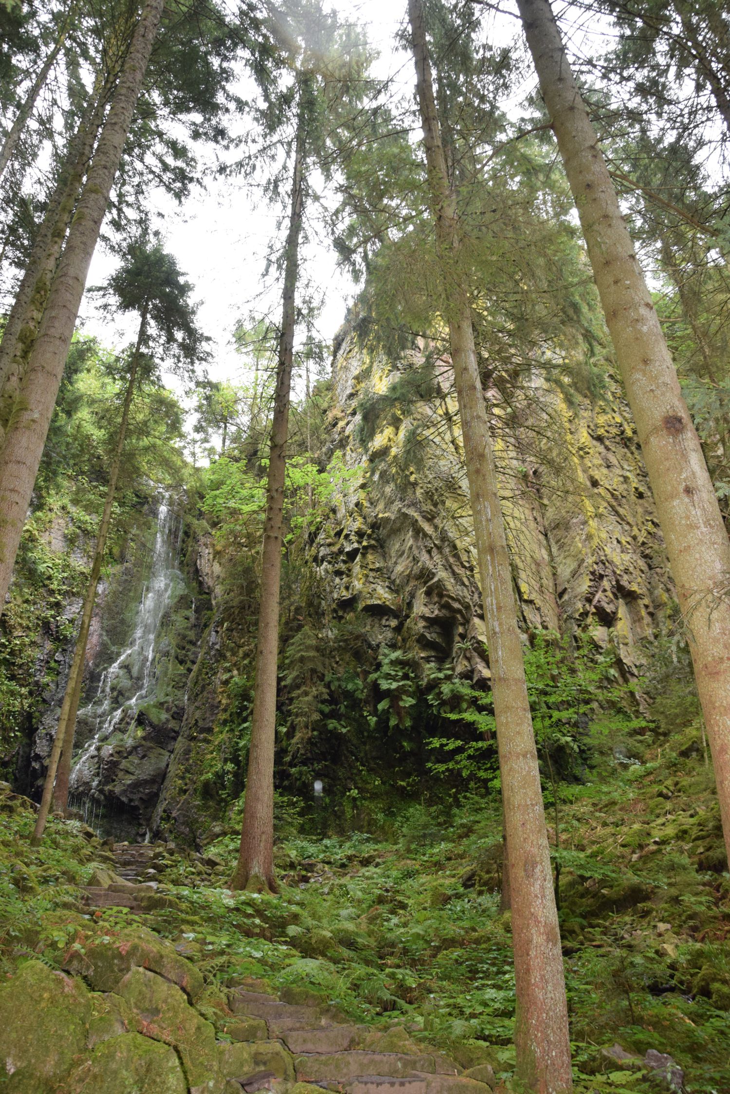 Dabei handelt es sich um einen der höchsten frei fallenden Wasserfälle in Deutschland. Der Burgbach fällt aus 32 m Höhe in die Tiefe, 15 m davon im freien Fall ohne dazwischen auf Gestein zu treffen. Doch bevor wir auf den Wasserfall treffen, führt uns unsere Wanderung linksseitig der Wolf bis nach Bad Rippoldsau (vorbei am Aussichtspavillon Schießhüttele) und hinab in den Ort. Hier hätten wir die Möglichkeit dem Spielplatz und oder oder der Gastronomie einen Besuch abzustatten (Schwarzwaldgasthof Klösterle Hof / Cafe und Restaurant Schlüssel). Bevor wir dann endlich den Wasserfall erreichen, geht es vorbei an der Wallfahrtskirche Mater Dolorosa und weiteren Aussichtspunkten zum Burgbachfelsen. Nach einer kurzen Rast im Pavillon geht es dann hinab zum Wasserfall.