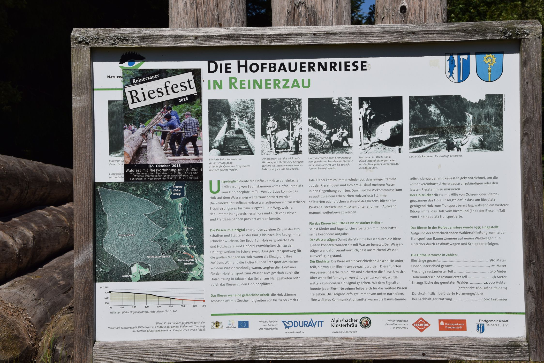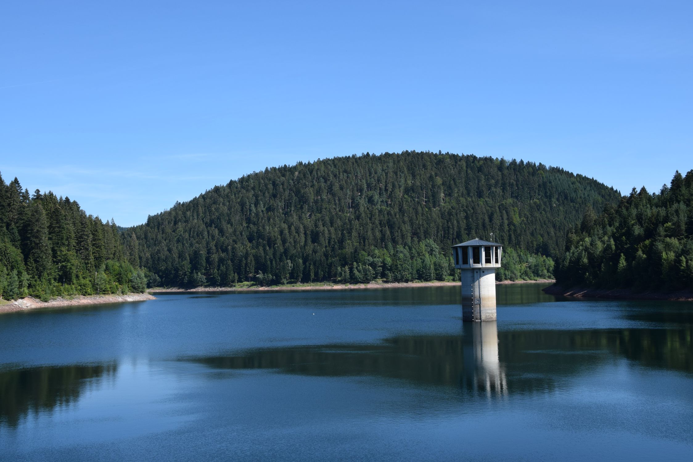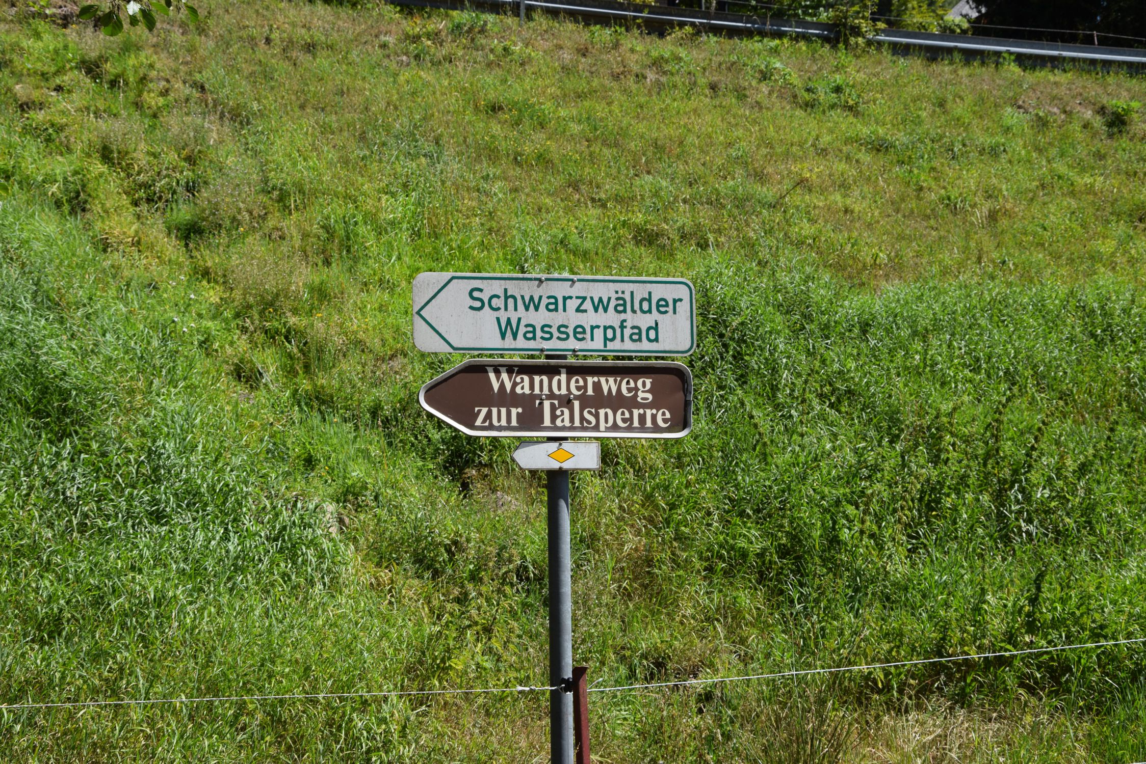 Der Alpirsbacher Wasserpfad (externer Link) führt entlang der Kleinen Kinzig zum Wasserwerk. Wir umrunden den Stausee. Der Weg auf dem Staudamm entlang bildet den Wendepunkt unserer Wanderung. Der Weg ist gespickt mit 34 Infotafeln zum Thema Wasser.