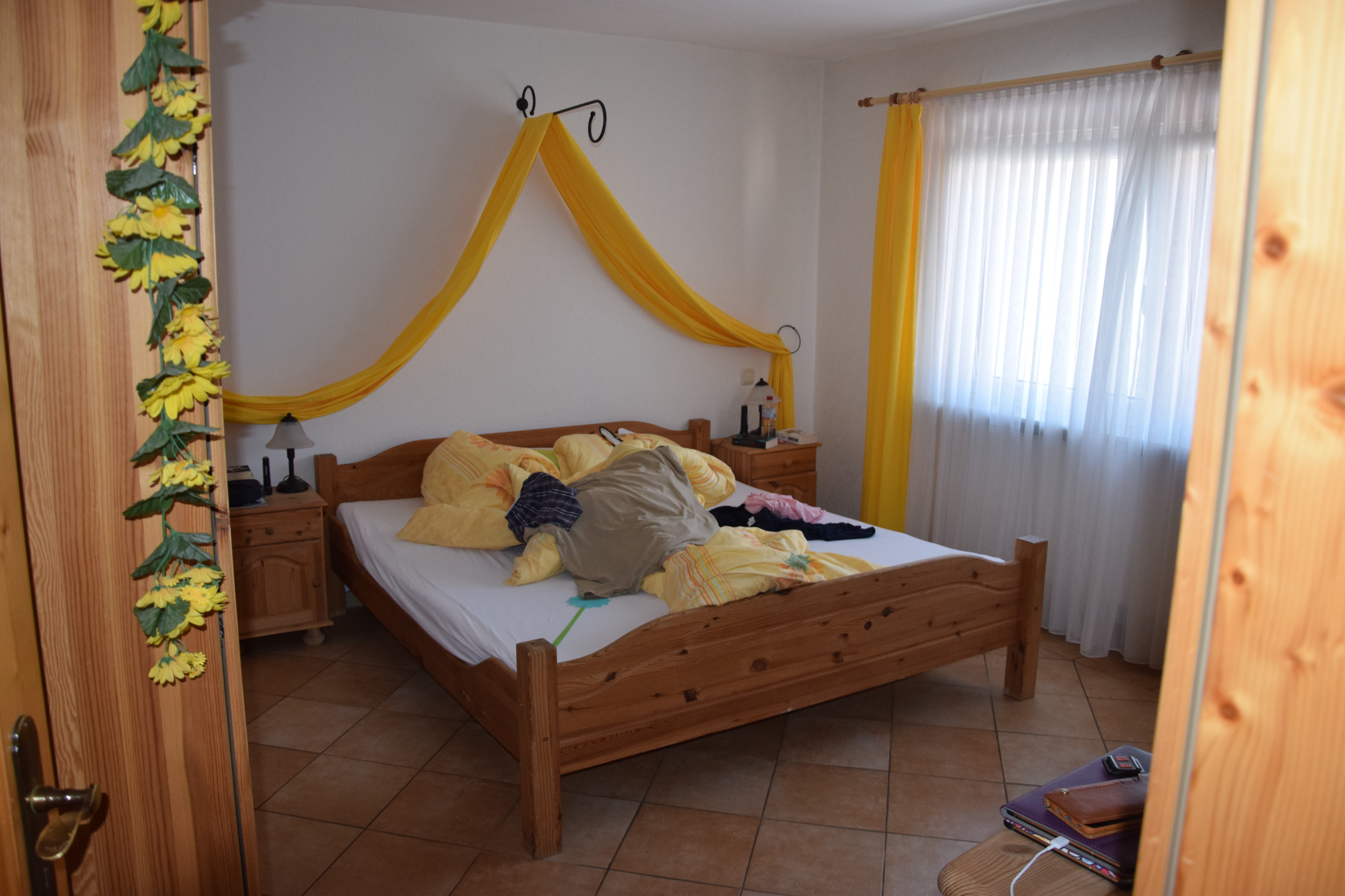 Unsere Ferienwohnung heißt "Kuhglocke" liegt im Obergeschoss und hat, neben den üblichen Annehmlichkeiten, auf die wir nicht mehr verzichten möchten (Geschirrspüler, Cerankochfeld und Tiefkühlschrank),