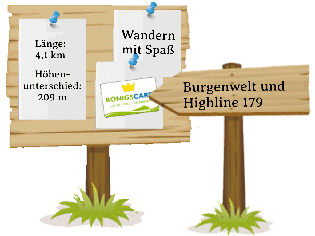 Achtung: Im Internet ist zu finden, dass die Festung Schlosskopf von der Grundeigentümerin bis auf Widerruf wegen Steinschlaggefahr gesperrt wurde. Daher ist ein Abstecher dorthin vermutlich nicht möglich. Also geht es entweder zu Fuß oder mit dem Aufzug wieder hinab ins Tal. Wenn wir noch Zeit und Lust haben, können wir dem Erlebnismuseum Burgenwelt einen Besuch abstatten, bevor es mit dem Auto wieder zurück nach Rückholz geht.