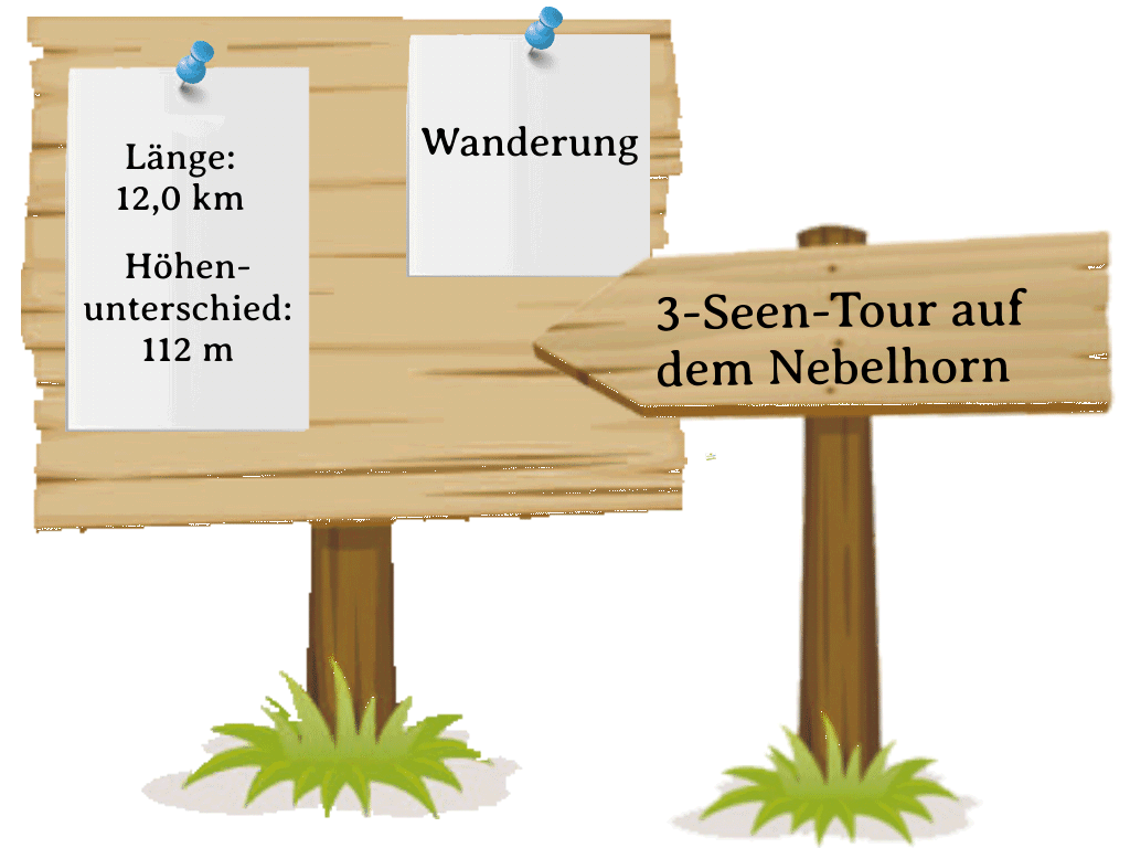 Entfernungen: Bergbahn-Station → 3 km ← Koblatsee → 600 m ← Laufbichlsee → 2 km ← Engeratsgrundsee