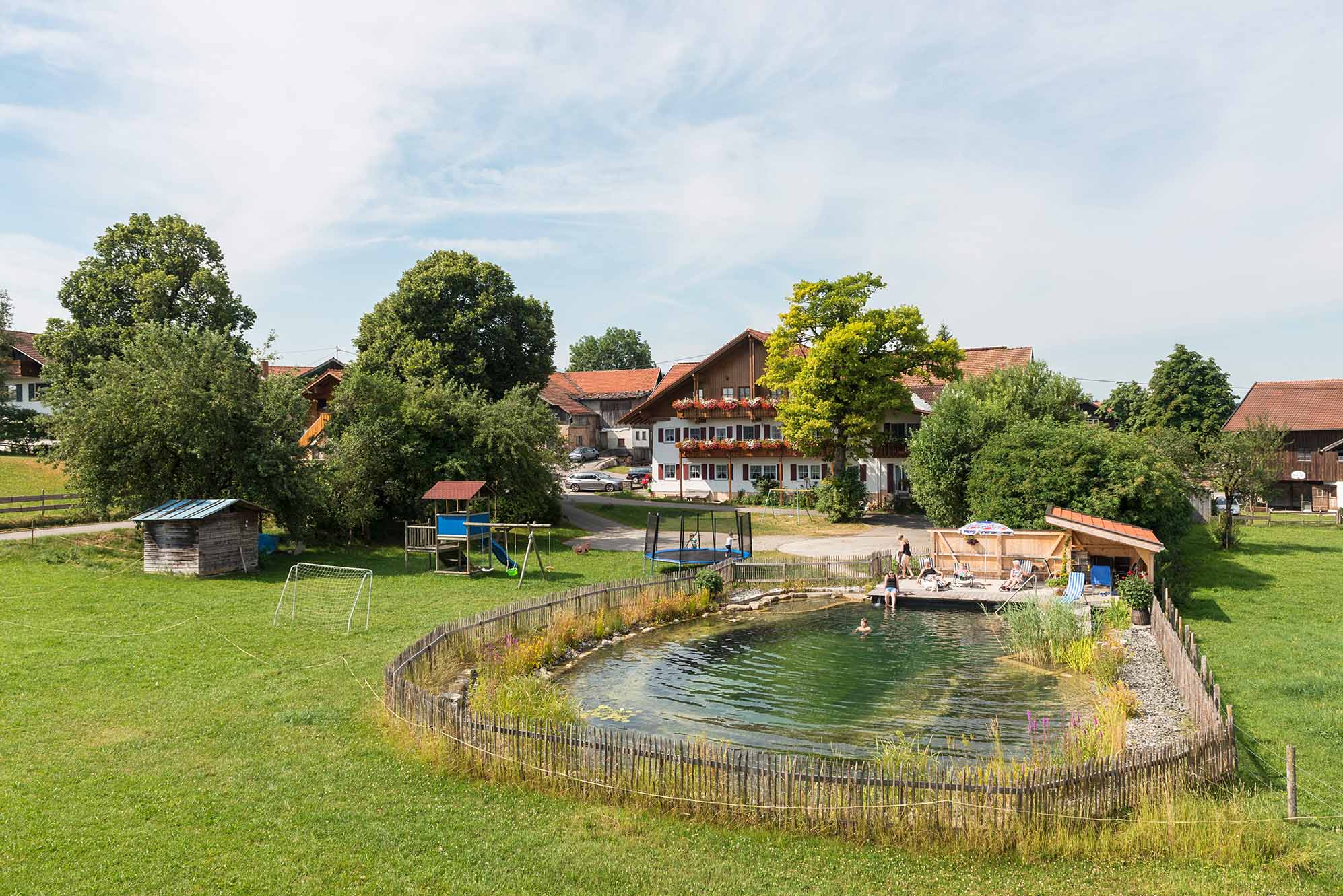 Unser Ferienhof liegt im Dreieck Kempten, Kaufbeuren und Füssen im Ostallgäu. Auf dem Bio-Bauernhof leben etwa 70 Milchkühe und natürlich kann man abends dem Füttern und Melken beiwohnen.