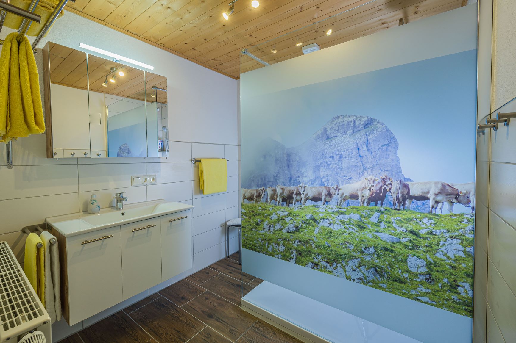 Wir konnten die Ferienwohnung "Schönewalder Weiher" ergattern. Sie ist 70 qm groß und liegt unterm Dach. Wir hoffen, dass wir vom Balkon aus eine gute Sicht auf das Allgäuer-Alpen-Panorama werfen
