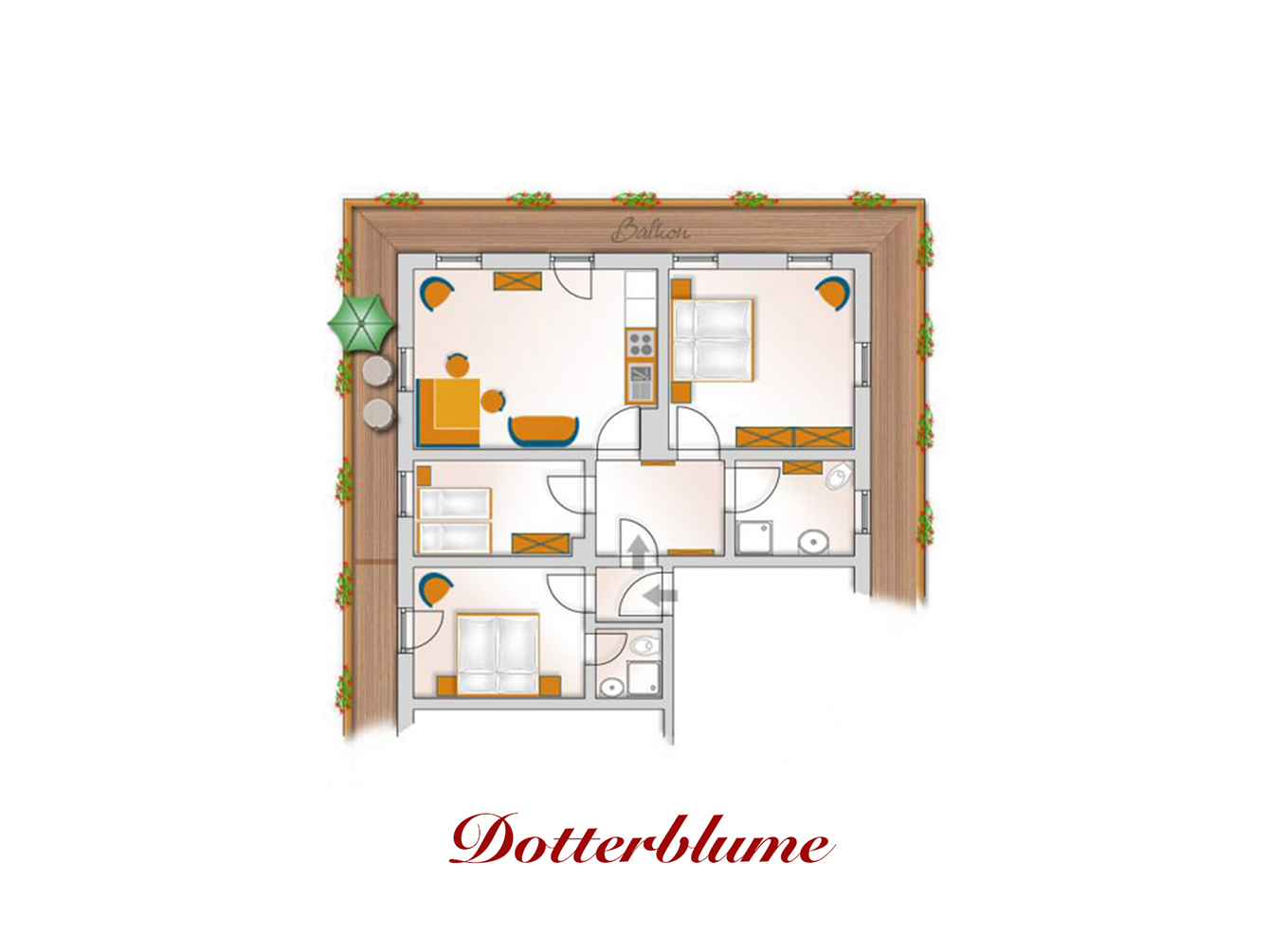 mit Küche und Essbereich ab. Ein Balkon rahmt unsere Wohnung ein. Der Bauernhof liegt zwischen den Orten Regen und Zwiesel.