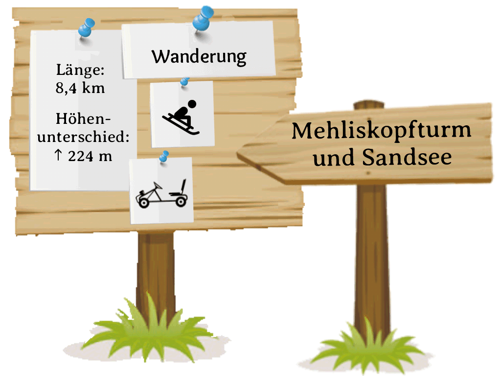 In einem weiten Bogen begeben wir uns auf den Rückweg. Bei km 5,8 unserer Wanderung (am Wegweiser "Ochsenkopfweg") besteht die Möglichkeit unsere Wanderung abzukürzen und auf kürzem Weg zum Startpunkt zurückzukehren, in dem wir einfach geradeaus weiter wandern. Wenn wir allerdings rechts in den Wanderweg einbiegen, so gelangen wir an den idyllisch gelegenen Sandsee, an dem es sich gut eine Pause einlegen lässt. Von dort gelangen wir wieder zurück nach Sand und gehen den Weg, den wir zu Anfang gekommen sind, wieder zurück.